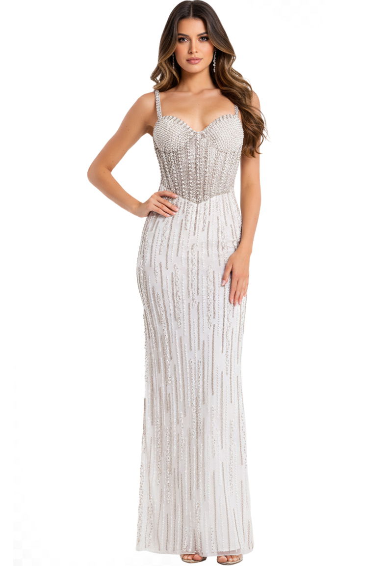 Fitted Gown with Beaded Bodice 49367