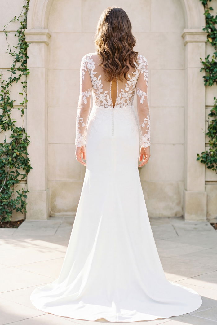 Elegant and timeless, this floor-length sheath gown features delicate long sheer beaded sleeves and an intricate lace overlay, complemented by a chic square neckline. The lightweight chiffon fabric ensures grace and comfort, making it the perfect choice for a sophisticated occasion.