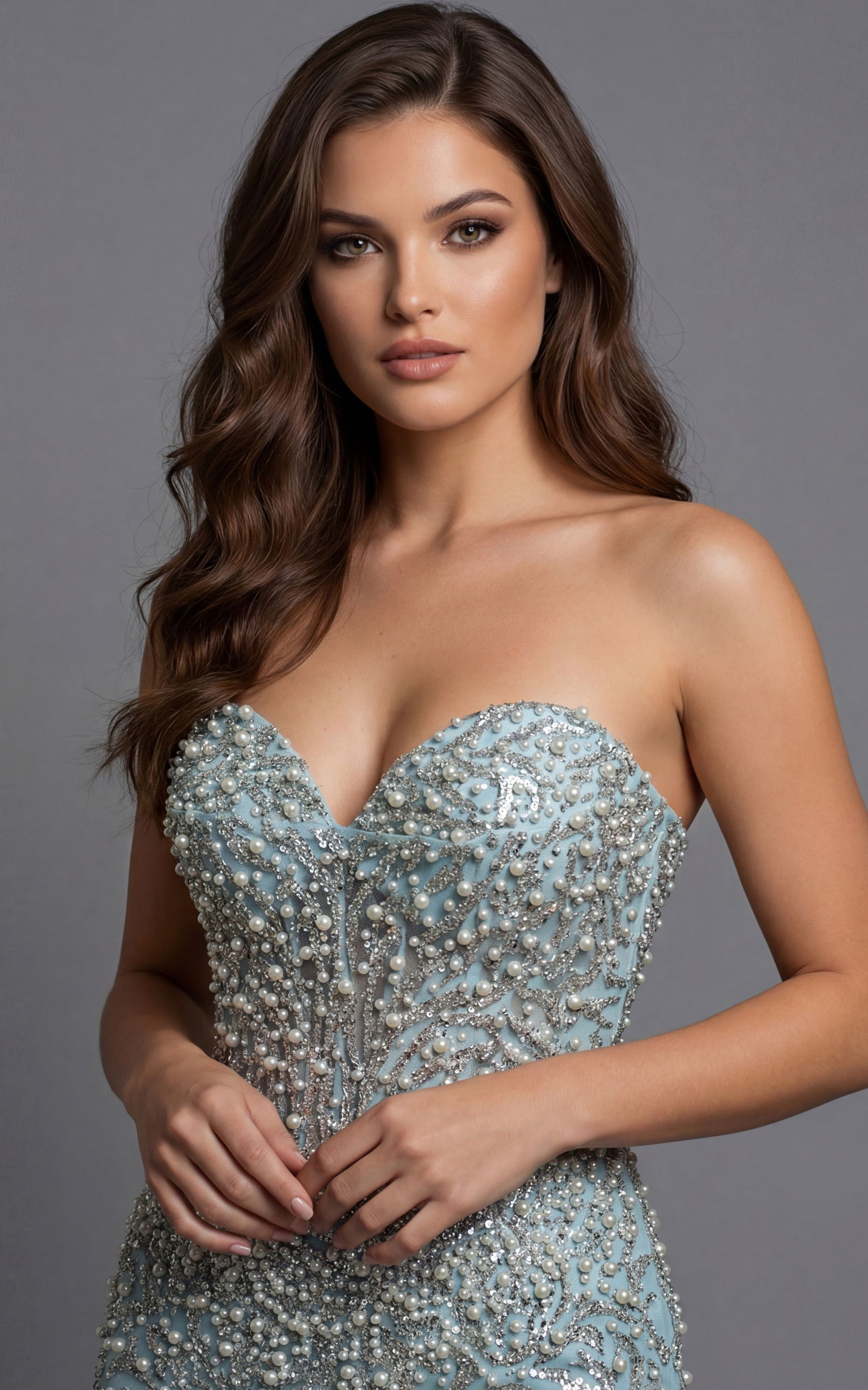 Intricate beadwork with sheer illusion finish and sculpted fitted bodice